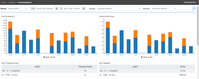 Fuel efficiency reports give side-by-side fuel consumption data for all your fleet vehicles.